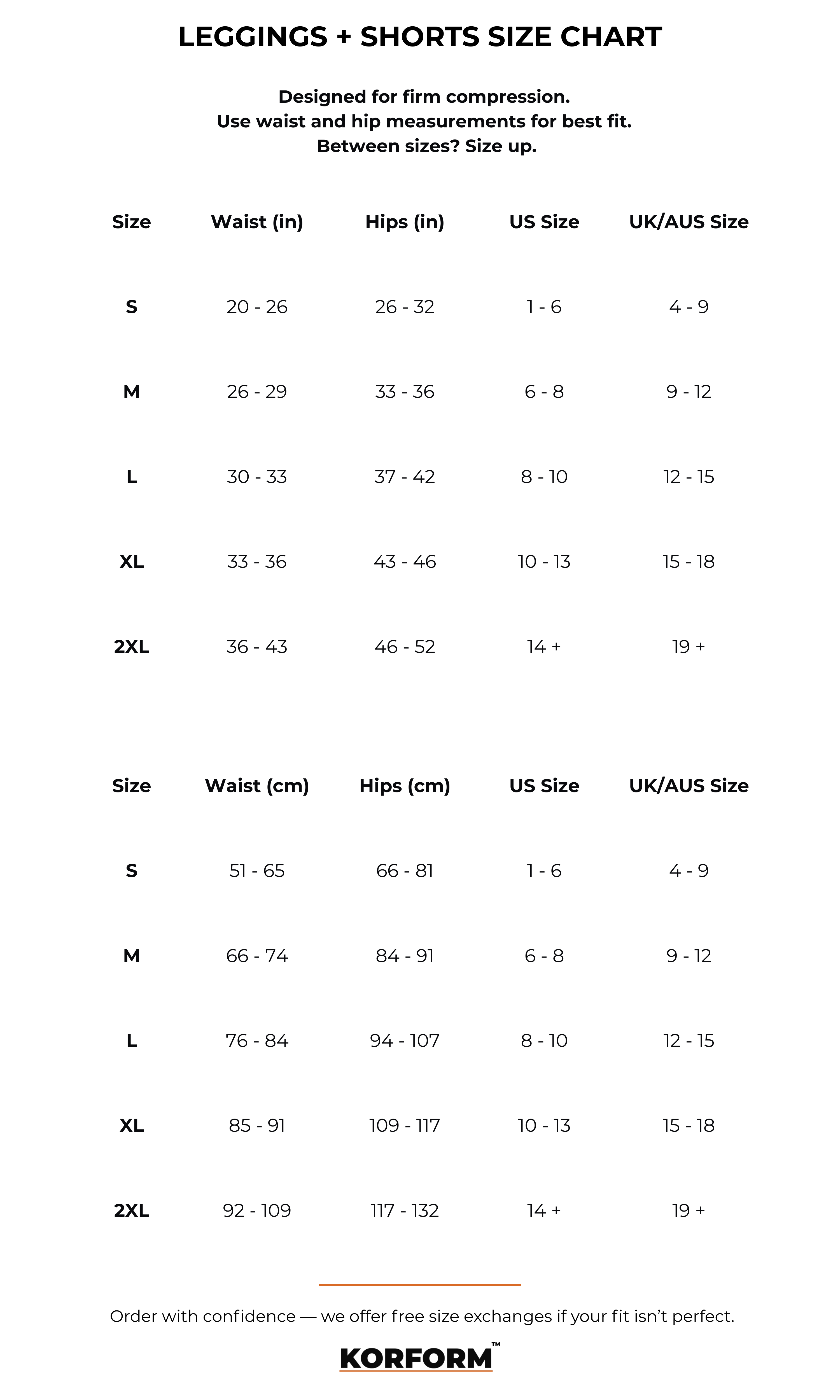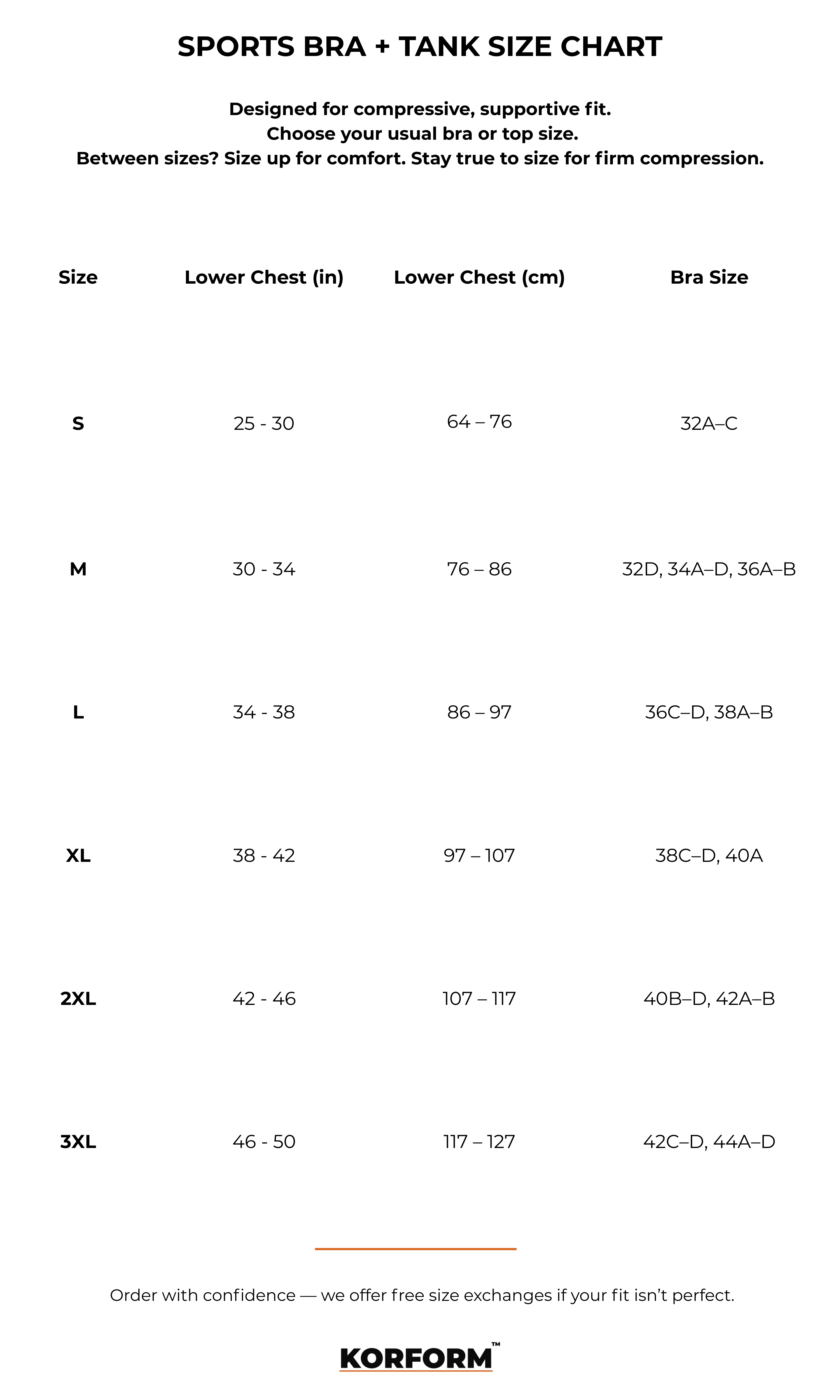 Use the charts below to find your best fit.